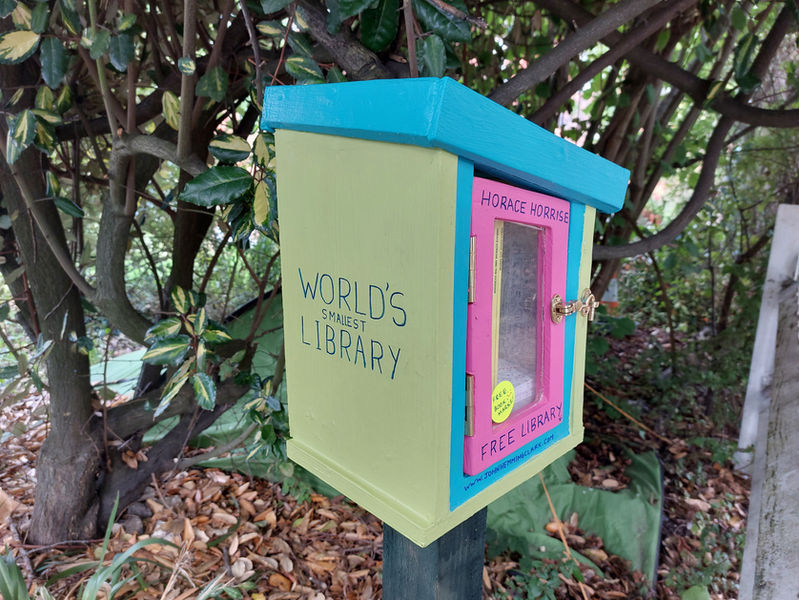 Having been writing books since 2014 I have now built what I believe is the world's smallest library, using reclaimed wood, and installed it in my front garden. I want to make my books available to those who pass by regularly to give them a smile on the way to and from school or work or wherever.